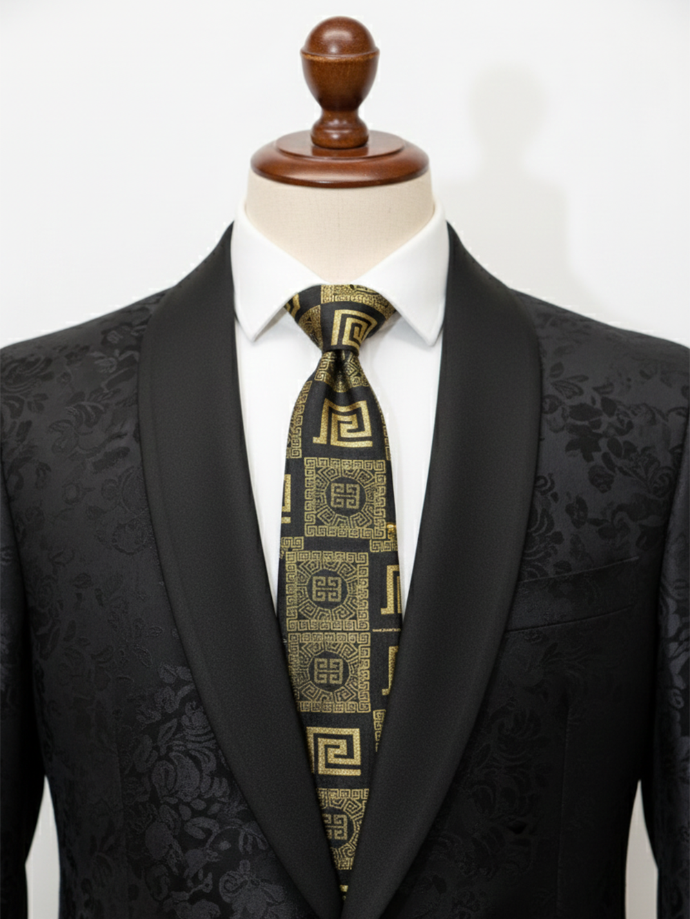 Add to WishlistAdd to CompareAdd a touch of luxury to your formal look with this Black Tie featuring elegant Golden Work detailing. The rich black base paired with refined gold accents creates a bold yet classy appearance, ideal for weddings, evening events, parties, and business occasions. Designed to elevate any suit or blazer, this tie delivers timeless elegance with a premium finish.