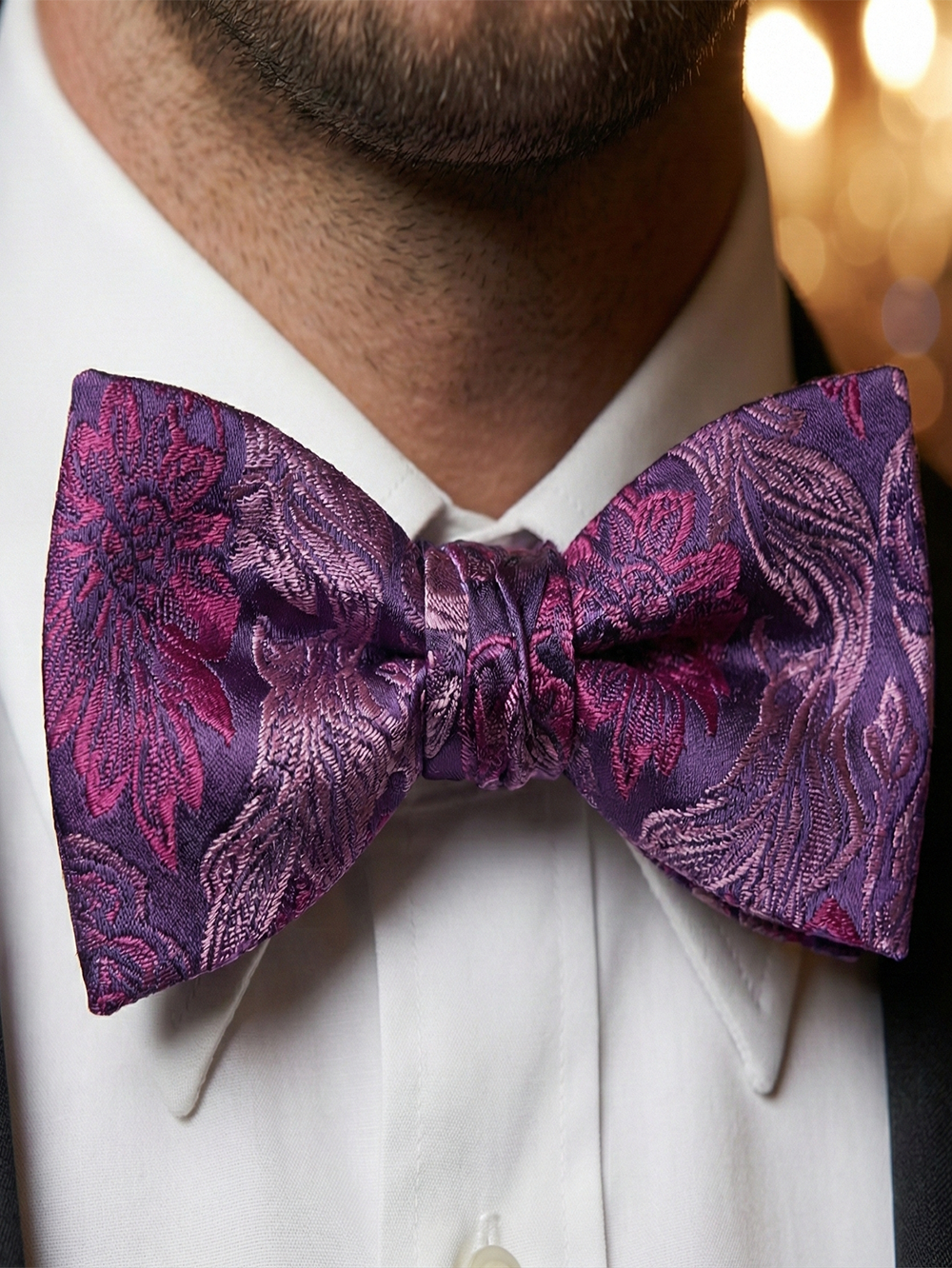 Elegant Purple Jacquard Floral Bow Tie ? Refined Formal Accessory