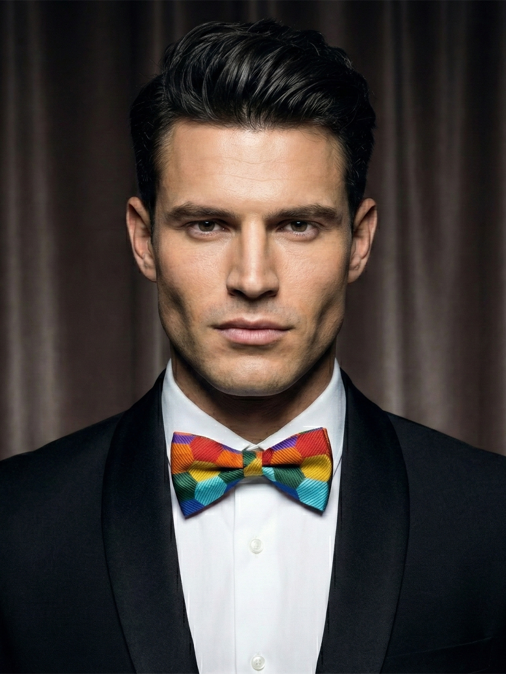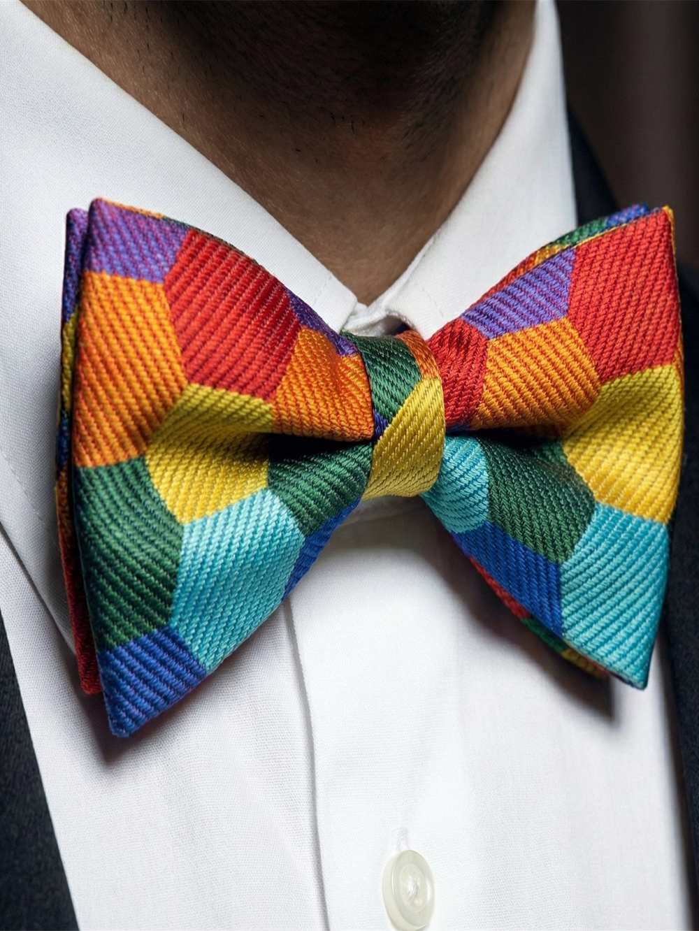 Multicolor Geometric Pattern Bow Tie ? Vibrant Formal Accessory