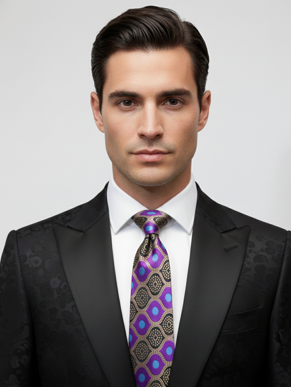 Add a touch of elegance and sophistication to your formal look with this *Premium Men?s Silk Tie. Designed with a rich **purple geometric pattern*, this tie perfectly balances modern style with classic charm.